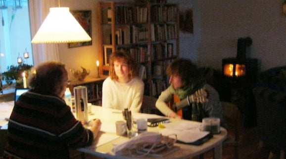 Generally I delivered a text, and they worked with it trying it up against some chords and tunes they were currently working on. Then they returned, we talked about it, and they let me listen to some of their attempts. We knew more or less where we were all going. At one point, in their family summer cottage on the island of Læsø, they took me completely by surprise by choosing a style and speed in the music for “Venus Descending” which was as far from my own sentiments around the poem as it could possibly be. They put some freshness into this quiet text which made it all turn out right.